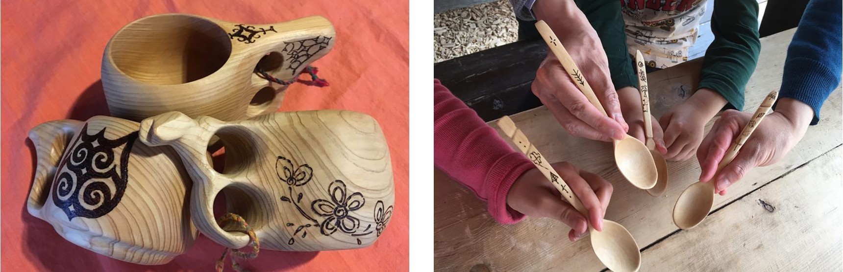 樺木湯匙或木杯製作(Kuksa 體驗),仿效北歐薩米人(Sami)的傳統,使用樺木或白樺木製作餐具。木杯(Kuksa)代表好運和友誼,讓您將 TOMAMU 森林的記憶「打包」帶回家。